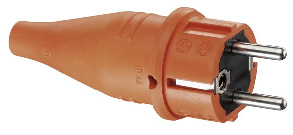 Вилка резиновая с мультизаземлением IP44, 16A, 2P+E, 250V, (оранжевый) | 1419170 | ABL Sursum