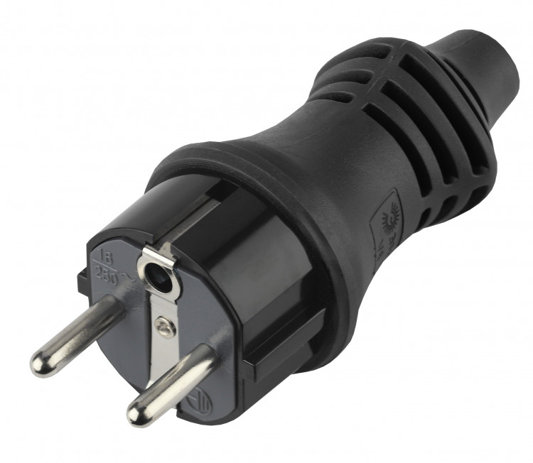 Вилка V6(B) IP44 каучук c/з 16A черная (10/100/4200) |Б0019193 | ЭРА