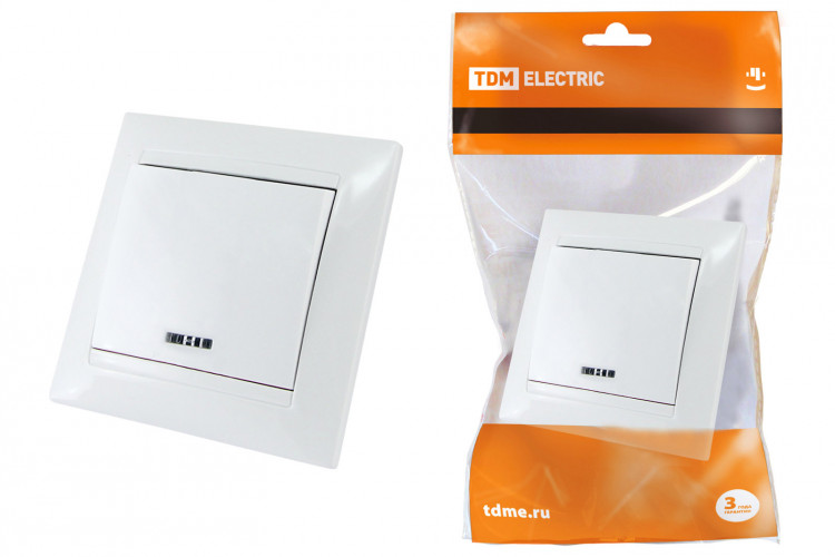 Выключатель 1 кл. с подсветкой 10А белый "Лама" | SQ1815-0004 | TDM