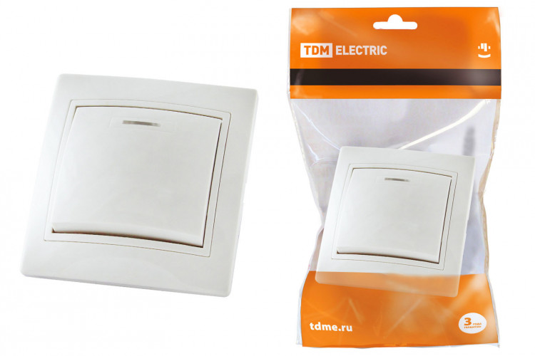Выключатель 1 кл. с подсветкой 10А белый "Таймыр" | SQ1814-0004 | TDM