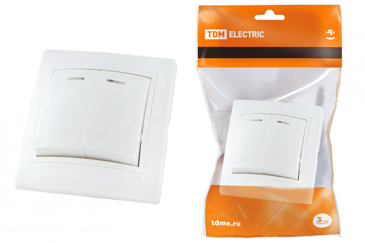 Выключатель 2 кл. с подсветкой 10А белый "Таймыр" | SQ1814-0005 | TDM