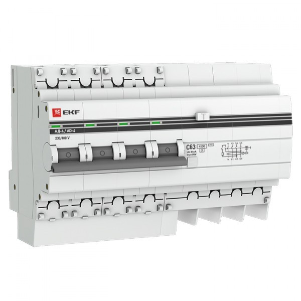 Выключатель автоматический дифференциальный АД-4 4п 50А C 300мА тип AC (8 мод) PROxima (электронный) | DA4-50-300-pro | EKF