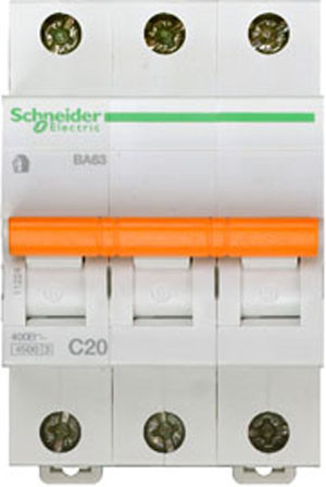 Выключатель автоматический трехполюсный ВА63 20А C 4,5кА | 11224 | Schneider Electric