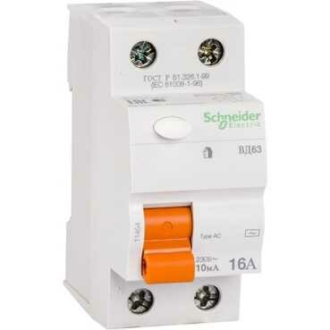 Выключатель дифференциальный (УЗО) ВД63 2п 16А 10мА тип AC | 11454 | Schneider Electric