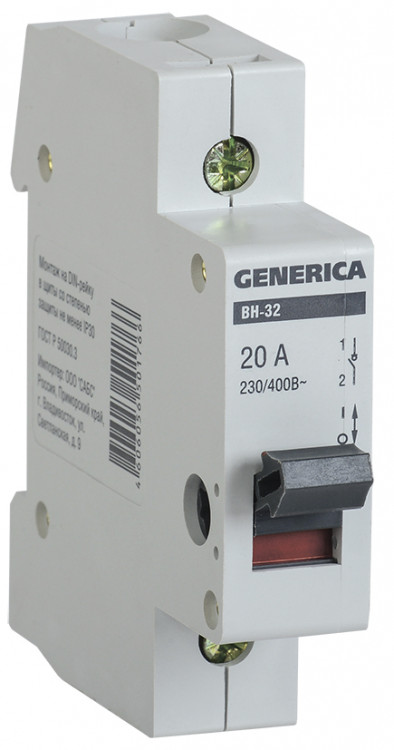 Выключатель нагрузки (мини-рубильник) ВН-32 1Р 63А GENERICA | MNV15-1-063 | IEK