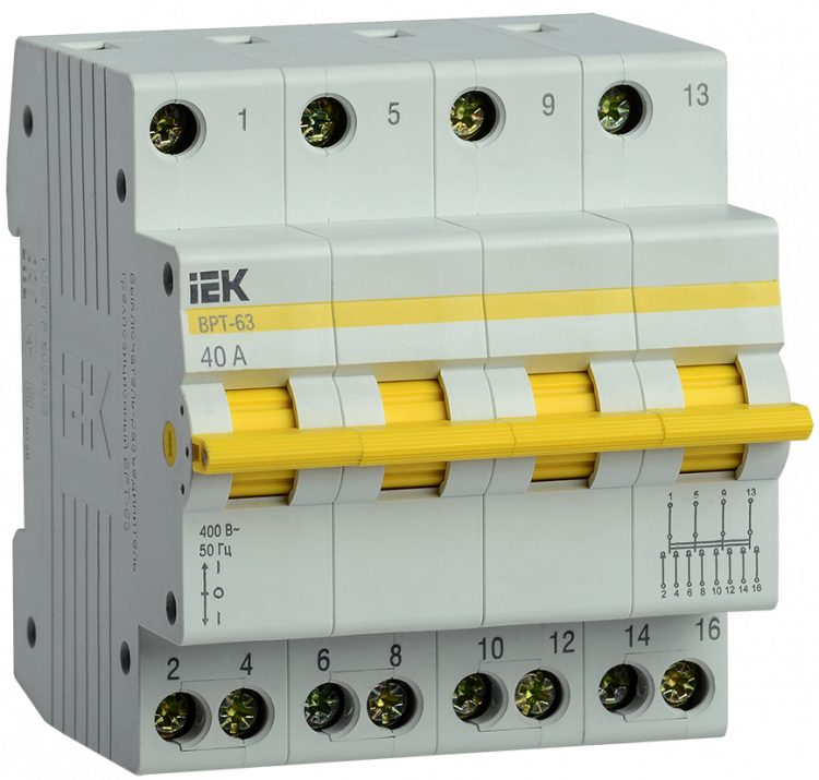 Выключатель нагрузки (рубильник) трехпозиционный ВРТ-63 4п 40А | MPR10-4-040 | IEK