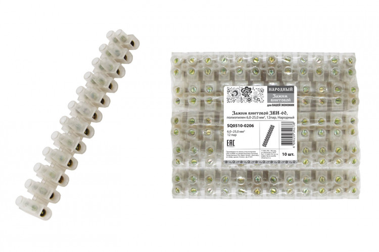 Зажим винтовой ЗВИ-60, полиэтилен 6,0-25,0 мм2, 12пар,Народный | SQ0510-0206 | TDM