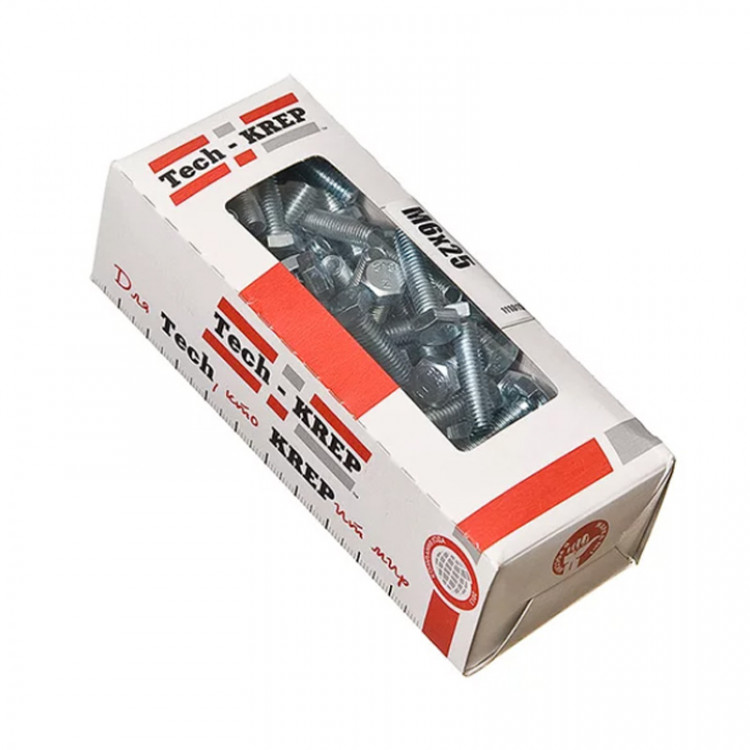 Болт DIN933 с шестигранной головкой оцинкованный М6х25 (70шт) - коробка с окном | 105202 | Tech-KREP