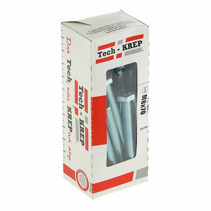 Болт DIN933 с шестигранной головкой оцинкованный М8х70 (20шт) - коробка с окном | 105213 | Tech-KREP