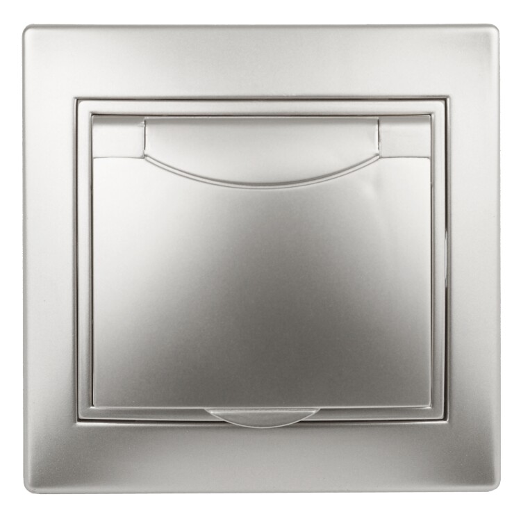 1-203-03 Intro Розетка 2P+E Schuko с крышкой, 16А-250В, IP20, СУ, Plano, алюминий | Б0030062 | Intro