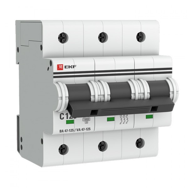Выключатель автоматический трехполюсный ВА 47-125 125А C 15кА PROxima | mcb47125-3-125C | EKF