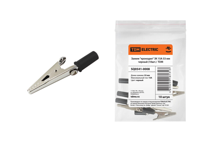 • Зажим "крокодил" ЗК 15А 53мм черный (10шт) | SQ0541-0008 | TDM